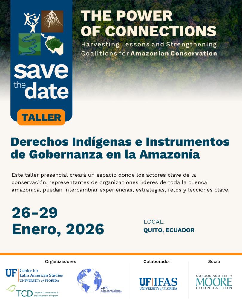 - Este taller internacional presencial reunirá a actores clave de la conservación, representantes de organizaciones líderes y especialistas en gobernanza de toda la cuenca amazónica, con el objetivo de intercambiar experiencias, analizar instrumentos de gobernanza y fortalecer coaliciones para la protección de los derechos indígenas y la conservación amazónica.
