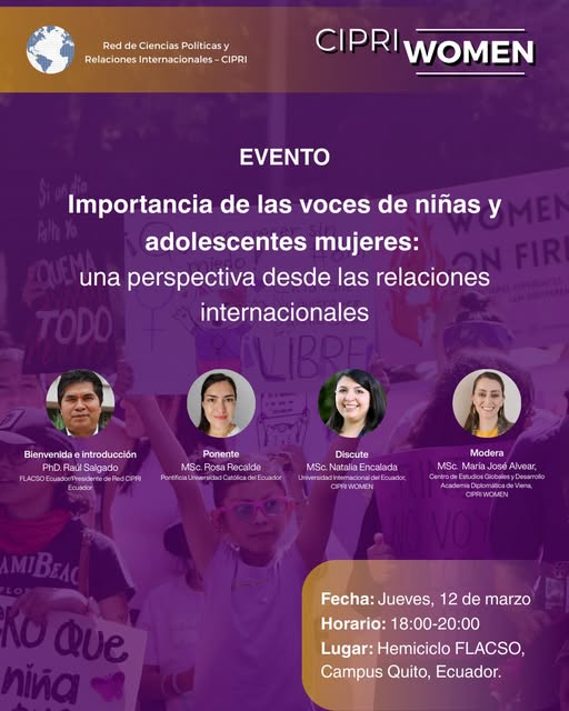 Desde la Red de Ciencias Políticas y Relaciones Internacionales – CIPRI presentamos este espacio de diálogo y reflexión organizado por CIPRI WOMEN, dedicado a visibilizar y fortalecer el papel de niñas y adolescentes en la agenda internacional.